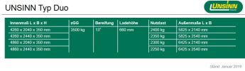 - 8 Zurrmulden klappbar, im Bodenrahmenprofil versenkt montiert und zusätzlich 8 Zurrösen unter der Ladefläche